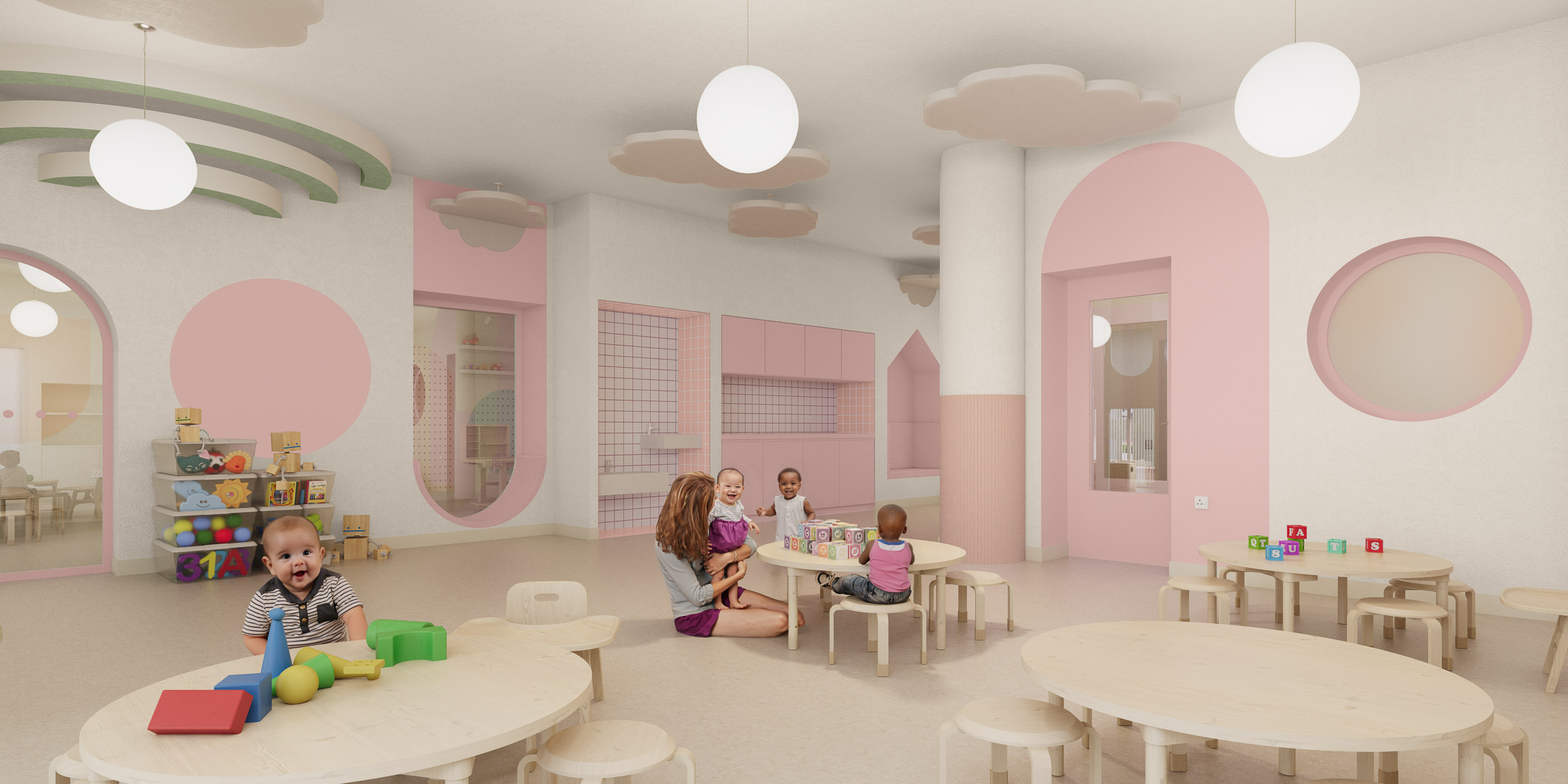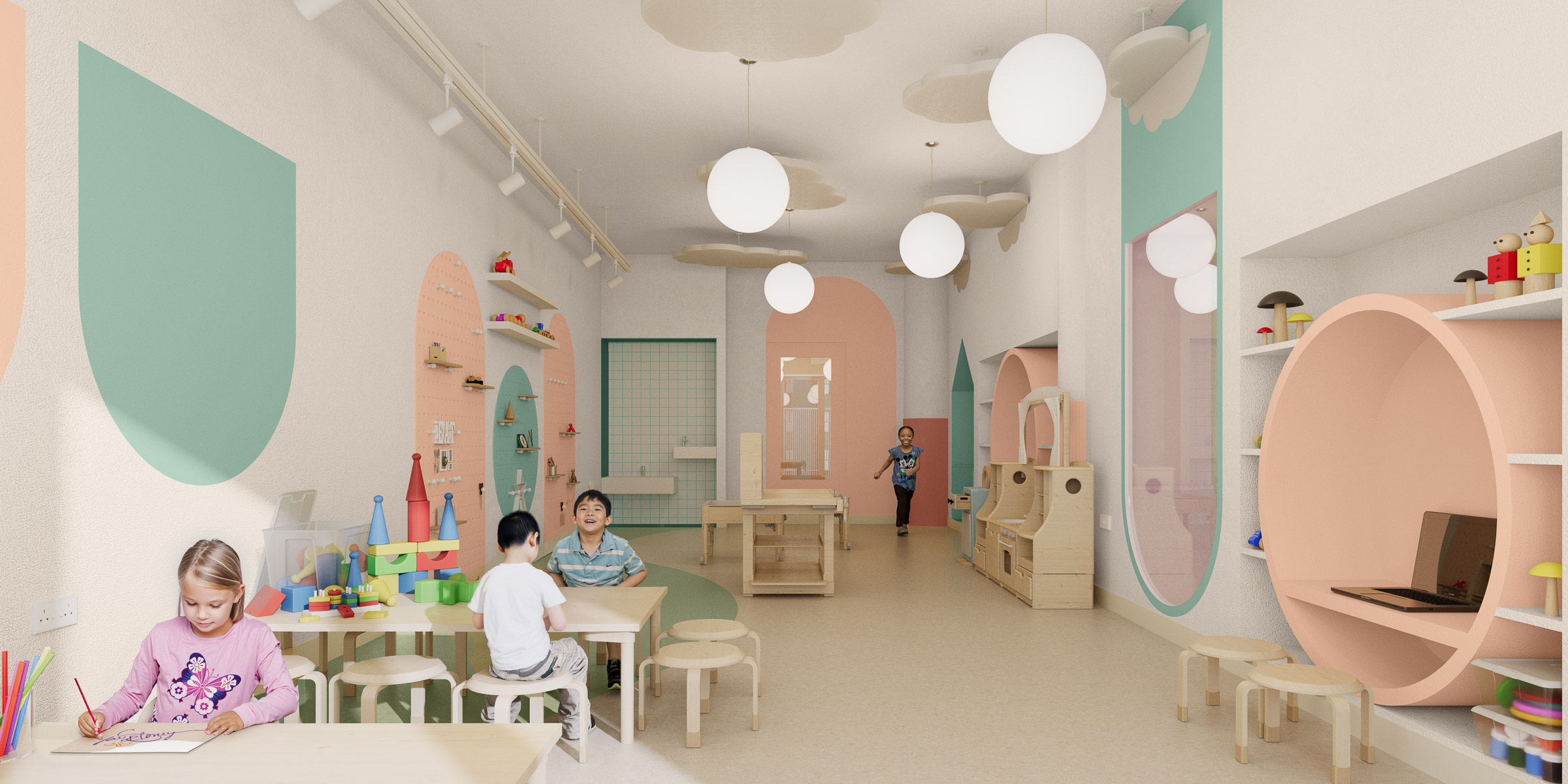Developed in close collaboration with the nursery’s founder, the project translates the brand’s values and identity into a built environment for the first time. As the inaugural location in a planned series of new nurseries, the design establishes a clear spatial language that can be adapted and replicated across future sites, supporting the client’s long-term growth while maintaining a strong and consistent identity.
