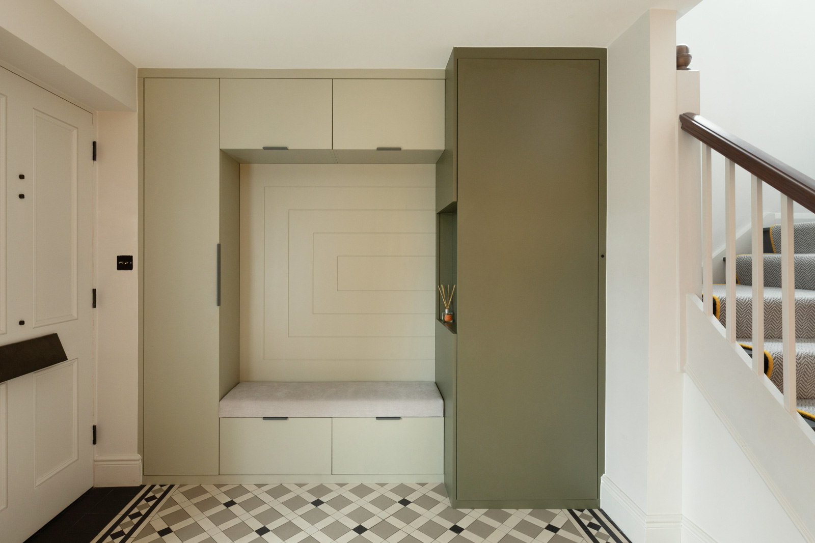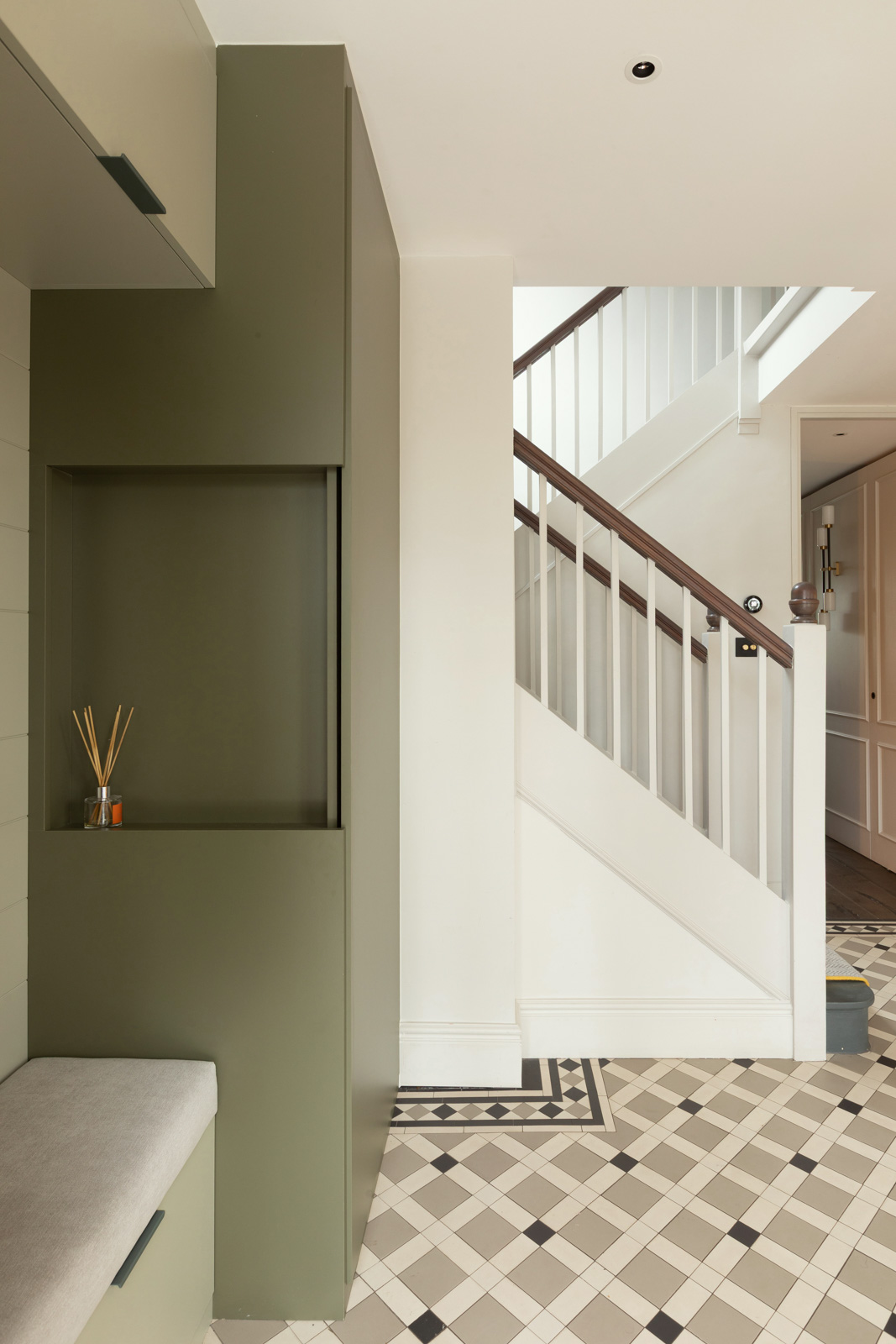 This project transforms the internal spaces of a three-storey semi-detached dwelling, reconfiguring layouts to enhance both usability and comfort. A calming palette of natural, earthy tones underpins the scheme, with subtle accent colours adding warmth and depth. Patterns, soft textures, and muted finishes create a cohesive, inviting atmosphere throughout. Clever spatial solutions ensure every room feels considered, while the considered redecoration ties the house together, enhancing its sense of harmony and flow.