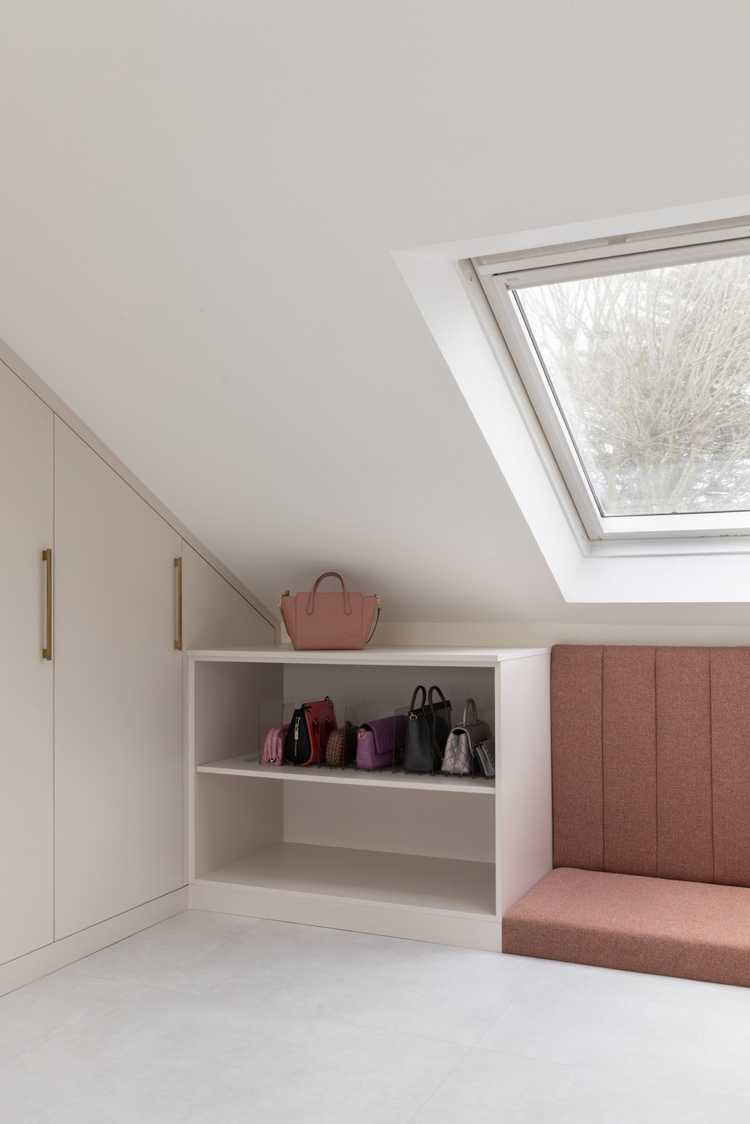 A bespoke joinery unit at the ground floor entrance provides practical storage and a niche seating space for putting on shoes, while the lower ground floor cinema room is refreshed with a new decorative scheme. The design introduces an en-suite bathroom and walk-in wardrobe on the first floor, while the second floor is reworked to provide a principal bedroom with its own en-suite, walk-in wardrobe, and additional storage. Every change is purposeful, maximising space and functionality without compromising the property’s character.